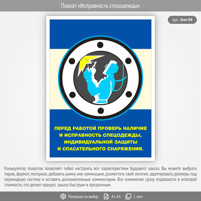 Плакат «Исправность спецодежды» (Агит-04, 1 лист) в Ульяновске купить