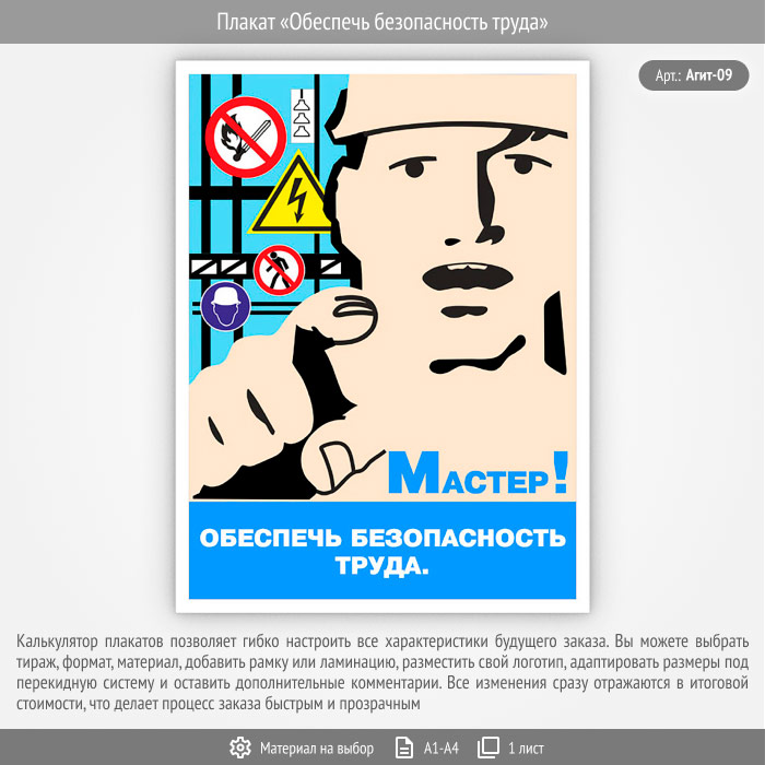 Плакат «Обеспечь безопасность труда» (Агит-09, 1 лист) в Ульяновске купить
