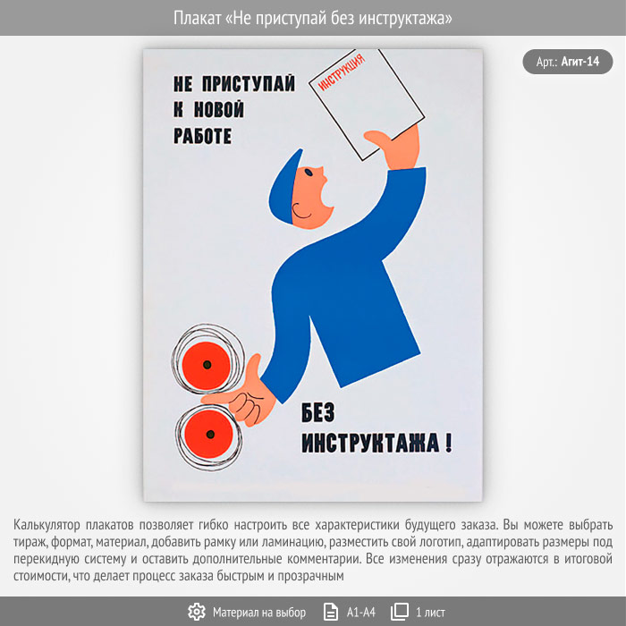 Плакат «Не приступай без инструктажа» (Агит-14, 1 лист) в Ульяновске купить