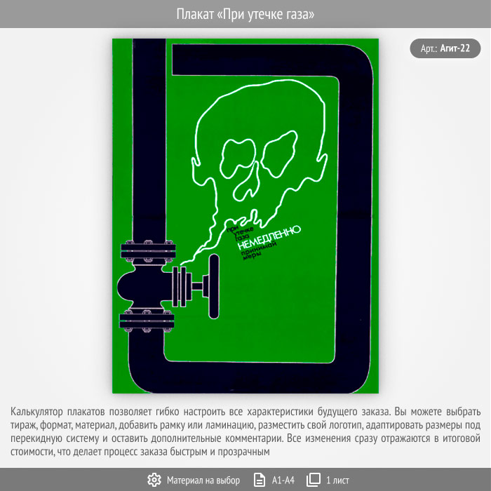 Плакат «При утечке газа» (Агит-22, 1 лист) в Ульяновске купить