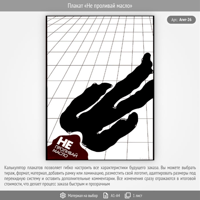 Плакат «Не проливай масло» (Агит-26, 1 лист) в Ульяновске купить
