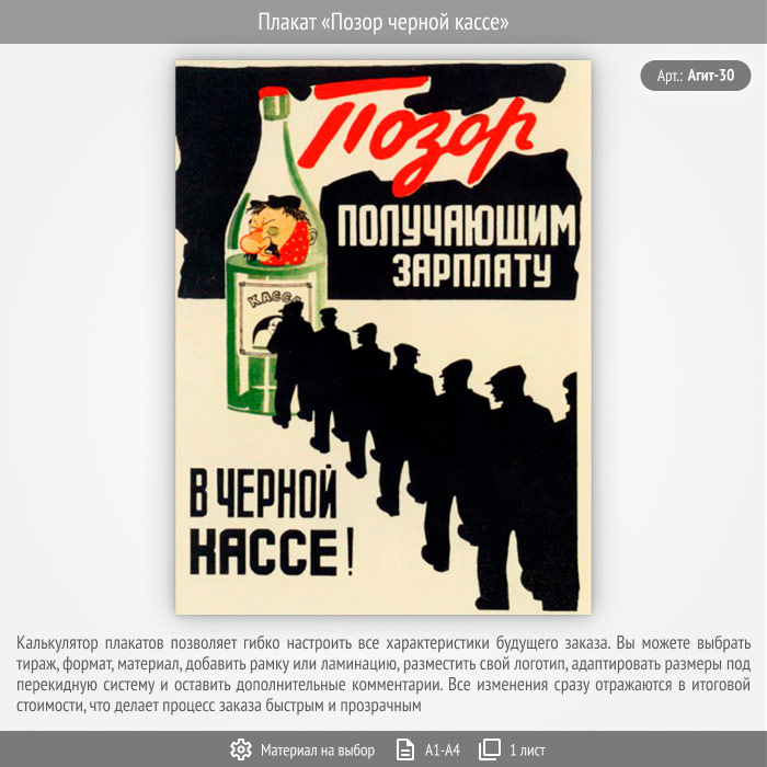 Плакат «Позор черной кассе» (Агит-30, 1 лист) в Ульяновске купить