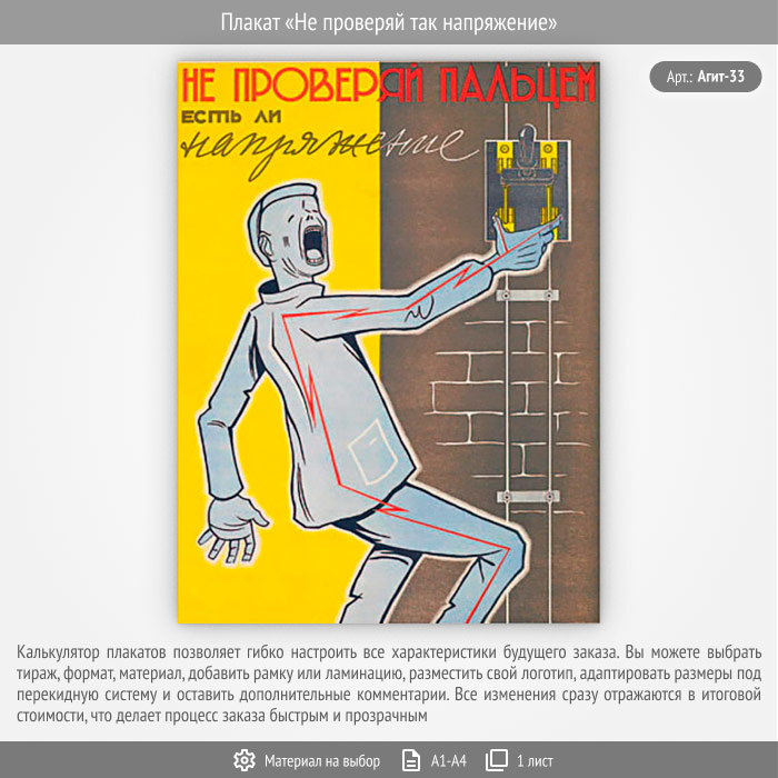 Плакат «Не проверяй так напряжение» (Агит-33, 1 лист) в Ульяновске купить