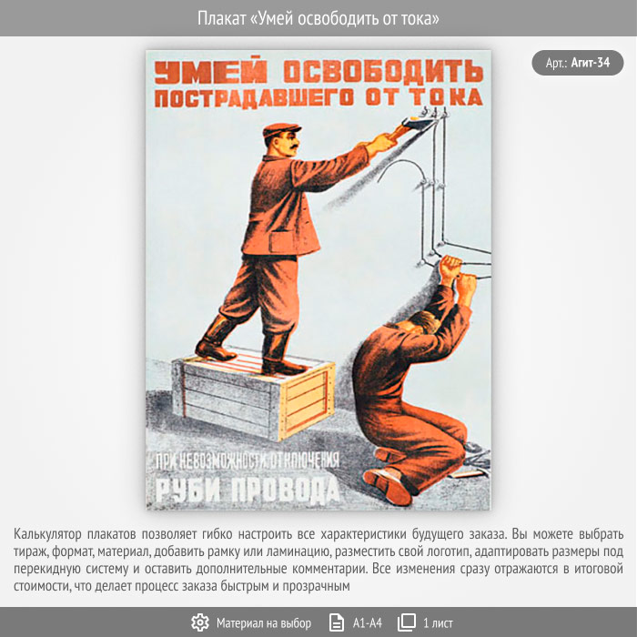 Плакат «Умей освободить от тока» (Агит-34, 1 лист) в Ульяновске купить