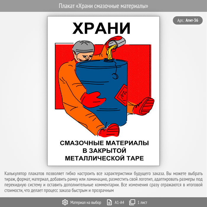 Плакат «Храни смазочные материалы» (Агит-36, 1 лист) в Ульяновске купить