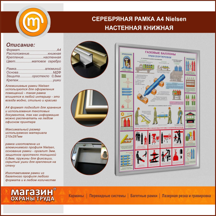 Багетная настенная рамка «Nielsen» А4 формата, книжная, матовое серебро в Ульяновске купить