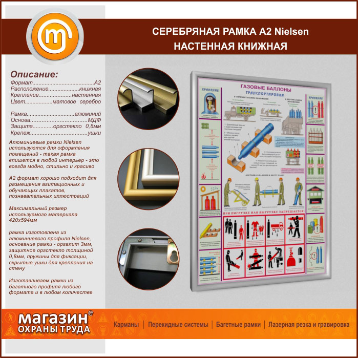 Багетная настенная рамка «Nielsen» А2 формата, книжная, матовое серебро в Ульяновске купить