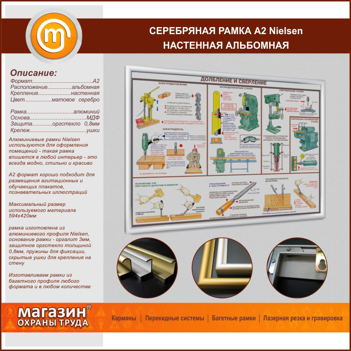 Багетная настенная рамка «Nielsen» А2 формата, альбомная, матовое серебро в Ульяновске купить
