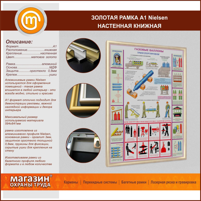 Багетная настенная рамка «Nielsen» А1 формата, книжная, матовое золото в Ульяновске купить