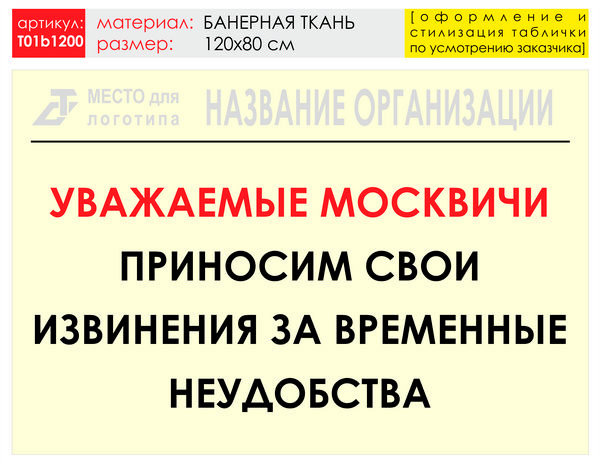 Баннер «Извинения», T01 (баннерная ткань, 120х90 см) в Ульяновске купить