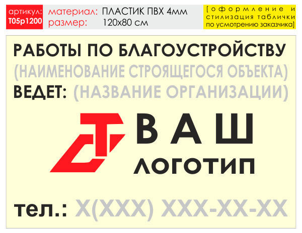 Баннер «Работы по благоустройству», T05 (пластик 4 мм, 120х90 см) в Ульяновске купить