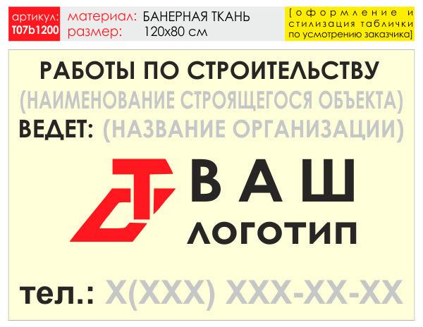 Баннер «Работы по строительству», T07 (баннерная ткань, 120х90 см) в Ульяновске купить
