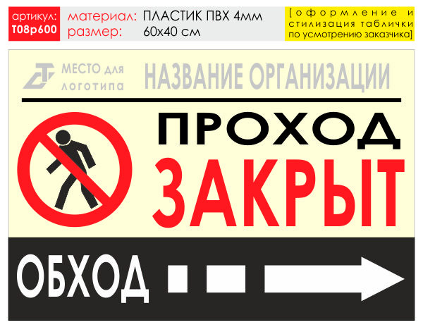 Баннер «Обход справа», T08 (пластик 4 мм, 60х40 см) в Ульяновске купить