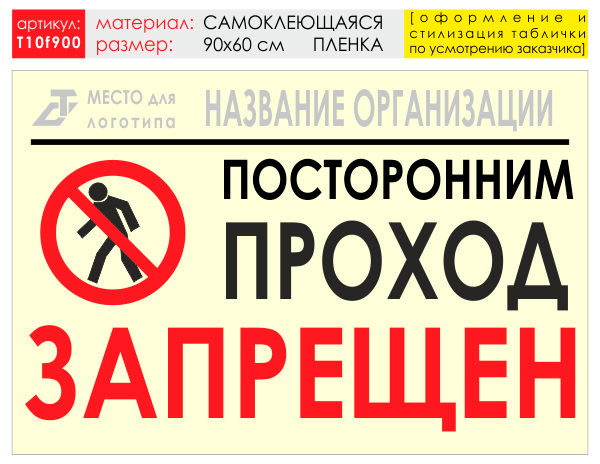 Баннер «Проход запрещен», T10 (самоклеящаяся плёнка, 90х60 см) в Ульяновске купить