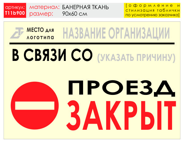 Баннер «Проезд закрыт», T11 (баннерная ткань, 90х60 см) в Ульяновске купить