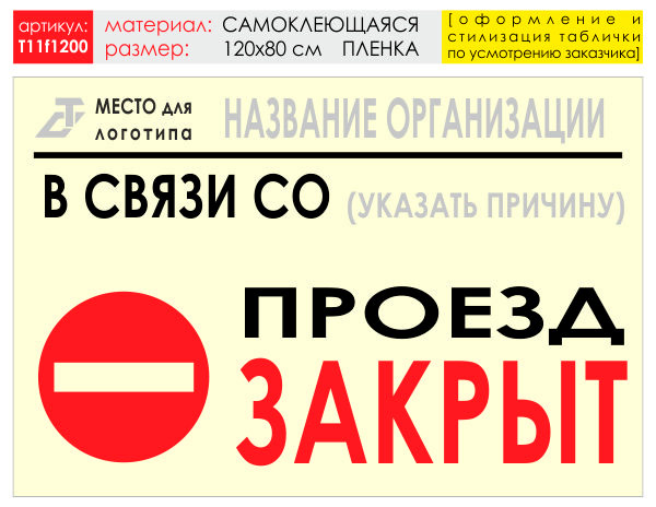 Баннер «Проезд закрыт», T11 (самоклеящаяся плёнка, 120х90 см) в Ульяновске купить