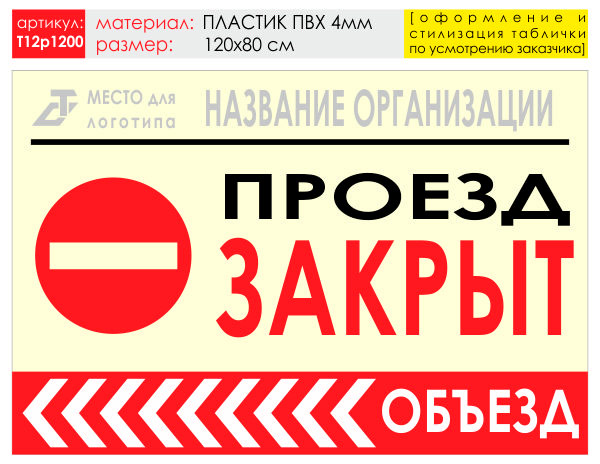 Баннер «Объезд слева», T12 (пластик 4 мм, 120х90 см) в Ульяновске купить