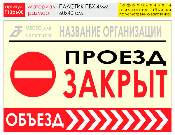 Баннер «Объезд справа», T13 (пластик 4 мм, 60х40 см) в Ульяновске купить