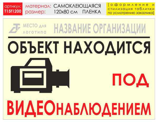 Баннер «Видеонаблюдение», T15 (самоклеящаяся плёнка, 120х90 см) в Ульяновске купить
