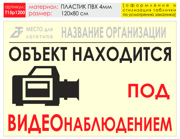 Баннер «Видеонаблюдение», T15 (пластик 4 мм, 120х90 см) в Ульяновске купить