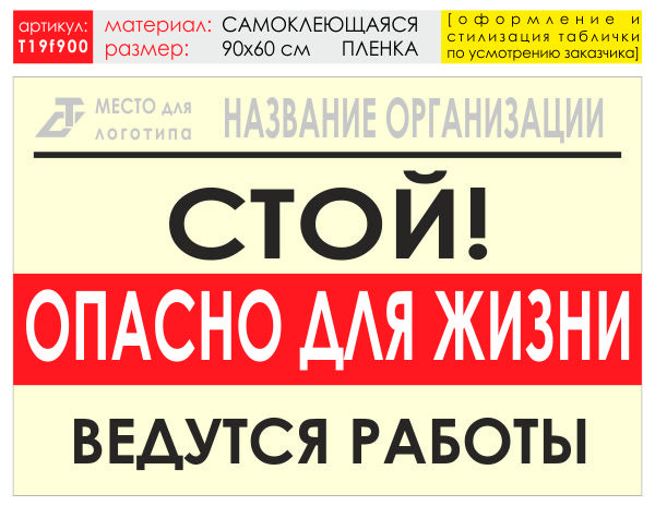 Баннер «Опасно для жизни», T19 (самоклеящаяся плёнка, 90х60 см) в Ульяновске купить