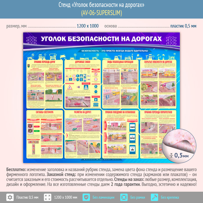Стенд «Уголок безопасности на дорогах» (AV-06-SUPERSLIM) в Ульяновске купить