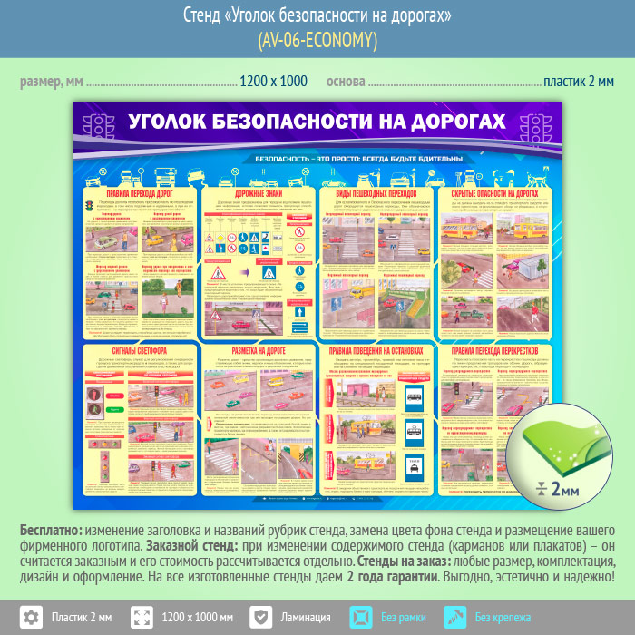Стенд «Уголок безопасности на дорогах» (AV-06-ECONOMY) в Ульяновске купить