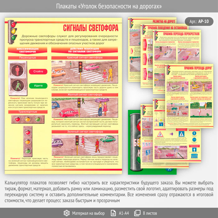 Плакаты «Уголок безопасности на дорогах» (АР-10, 8 листов) в Ульяновске купить