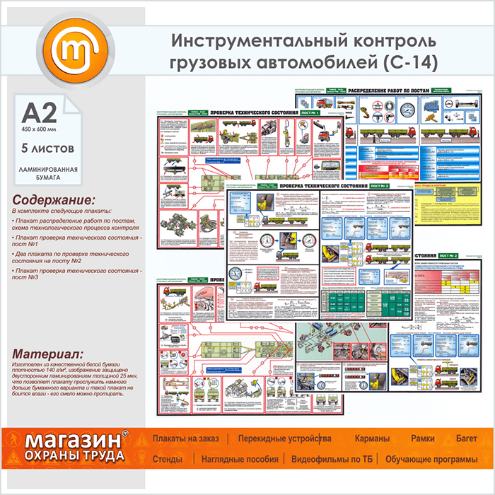 Плакаты «Инструментальный контроль грузовых автомобилей» (С-14, ламинированная бумага, А2, 5 листов) в Ульяновске купить