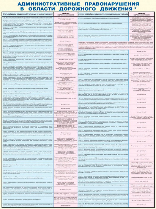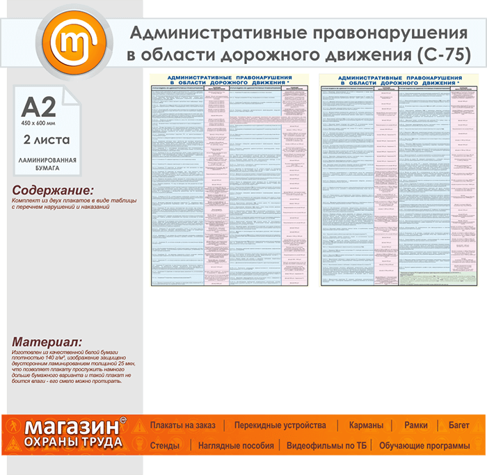 Плакаты «Административные правонарушения в области дорожного движения» (С-75, ламинированная бумага, А2, 2 листа) в Ульяновске купить
