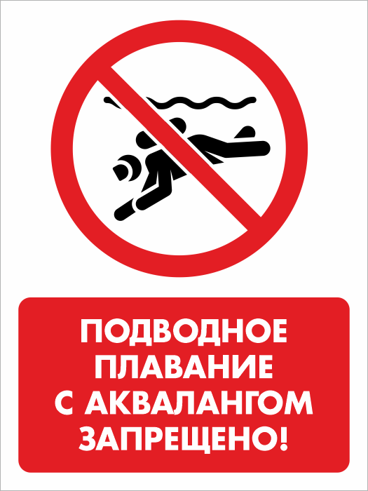 Знак «Подводное плавание с аквалангом запрещено!», БВ-38 (пленка, 400х600 мм) в Ульяновске купить