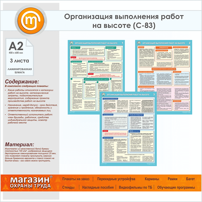 Плакаты «Организация выполнения работ на высоте» (С-83, ламинированная бумага, А2, 3 листа) в Ульяновске купить