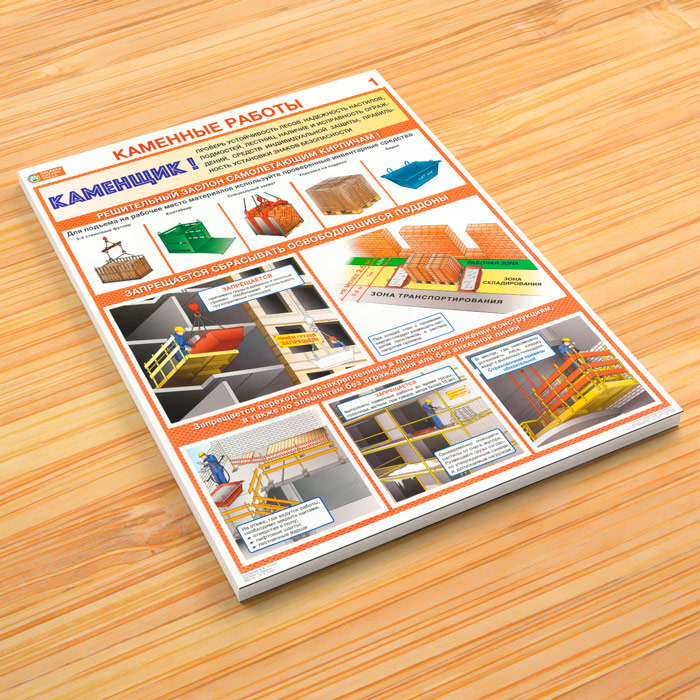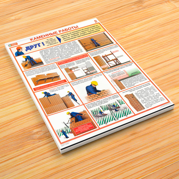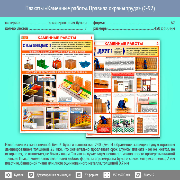 Плакаты «Каменные работы. Правила охраны труда» (С-92, ламинированная бумага, А2, 2 листа) в Ульяновске купить
