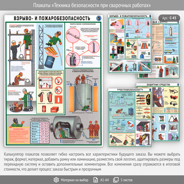 Плакаты «Техника безопасности при сварочных работах» (С-43, 5 листов) в Ульяновске купить