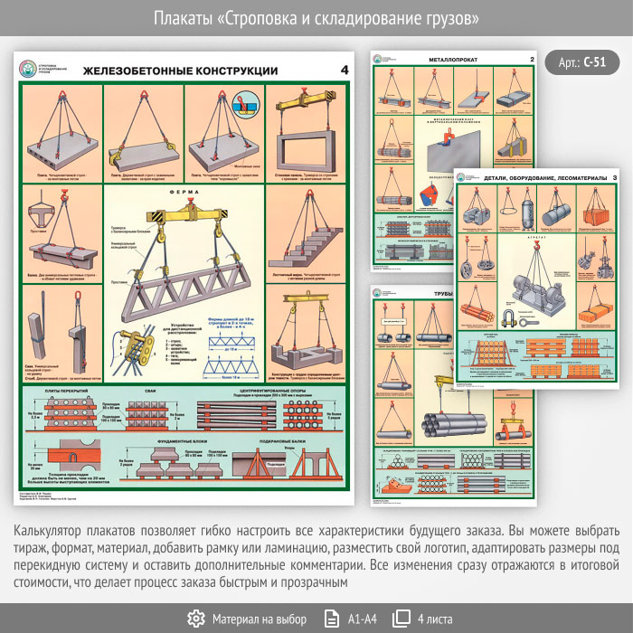 Плакаты «Строповка и складирование грузов» (С-51, 4 листа) в Ульяновске купить