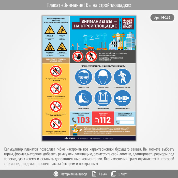 Плакат «Внимание! Вы на стройплощадке» с QR (М-136, 1 лист) в Ульяновске купить