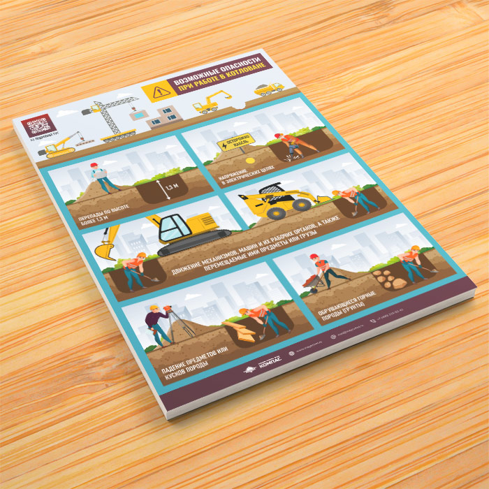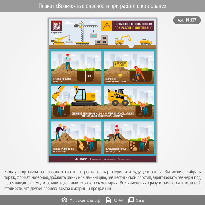 Плакат «Возможные опасности при работе в котловане» с QR (М-137, 1 лист) в Ульяновске купить
