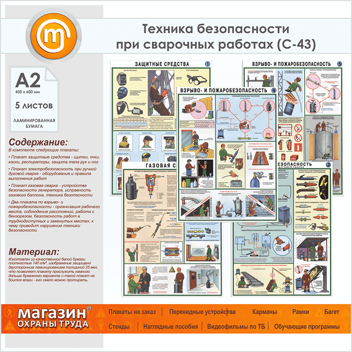 Плакаты «Техника безопасности при сварочных работах» (С-43, ламинированная бумага, А2, 5 листов) в Ульяновске купить