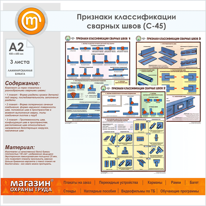 Плакаты «Признаки классификации сварных швов» (С-45, ламинированная бумага, А2, 3 листа) в Ульяновске купить