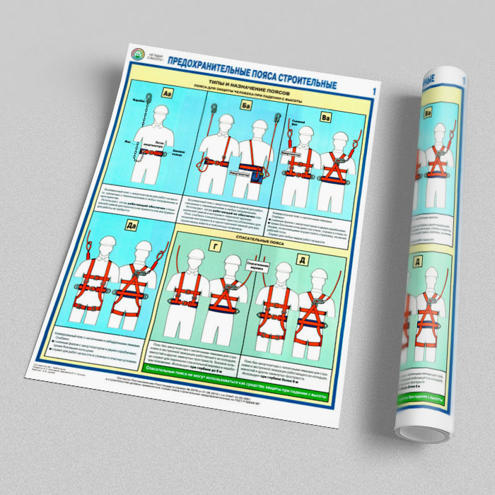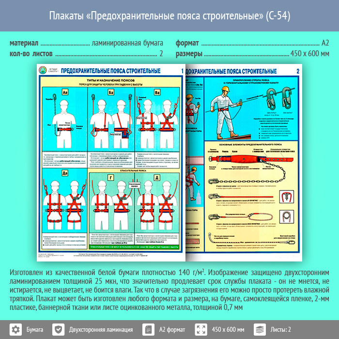 Плакаты «Предохранительные пояса строительные» (С-54, ламинированная бумага, А2, 2 листа) в Ульяновске купить