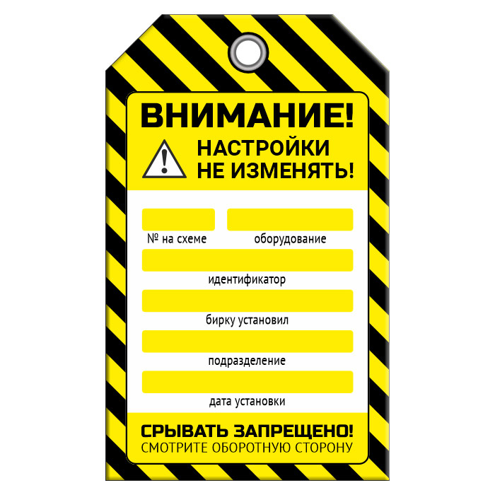 Бирка «НАСТРОЙКИ НЕ ИЗМЕНЯТЬ!» (1 шт., двусторонняя, пластик, 70х115 мм) в Ульяновске купить