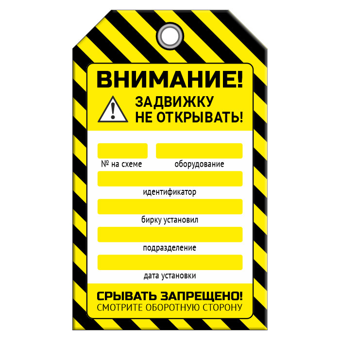 Бирка «ЗАДВИЖКУ НЕ ОТКРЫВАТЬ!» (1 шт., двусторонняя, пластик, 70х115 мм) в Ульяновске купить