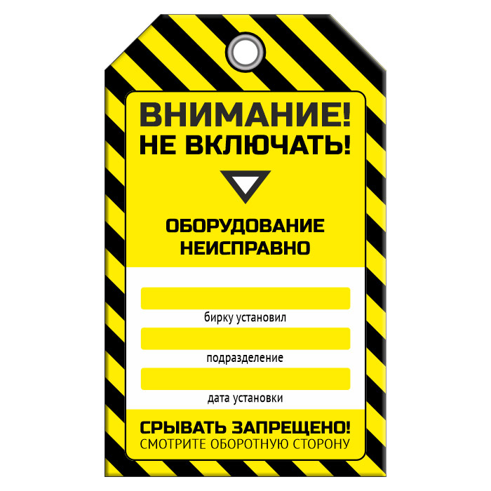 | Надпись: | «НЕ ВКЛЮЧАТЬ! ОБОРУДОВАНИЕ НЕИСПРАВНО» |