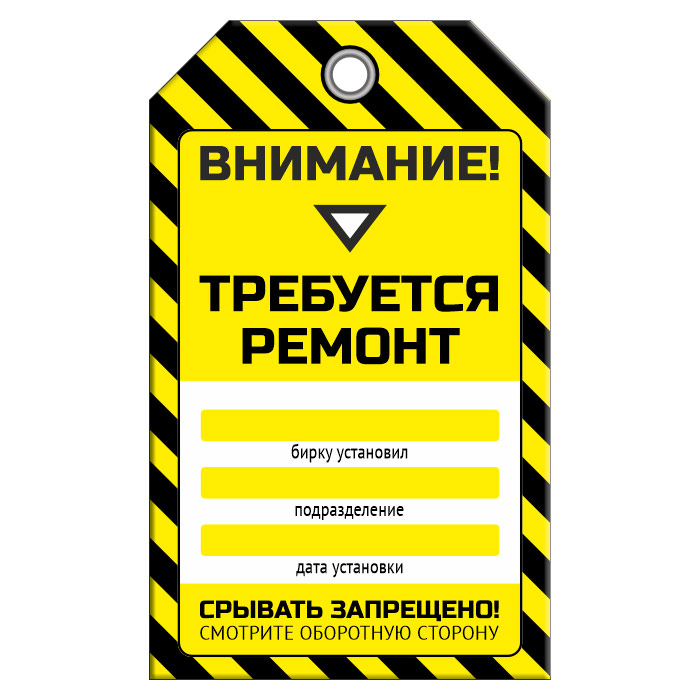 Бирка «ТРЕБУЕТСЯ РЕМОНТ!» (1 шт., двусторонняя, пластик, 70х115 мм) в Ульяновске купить