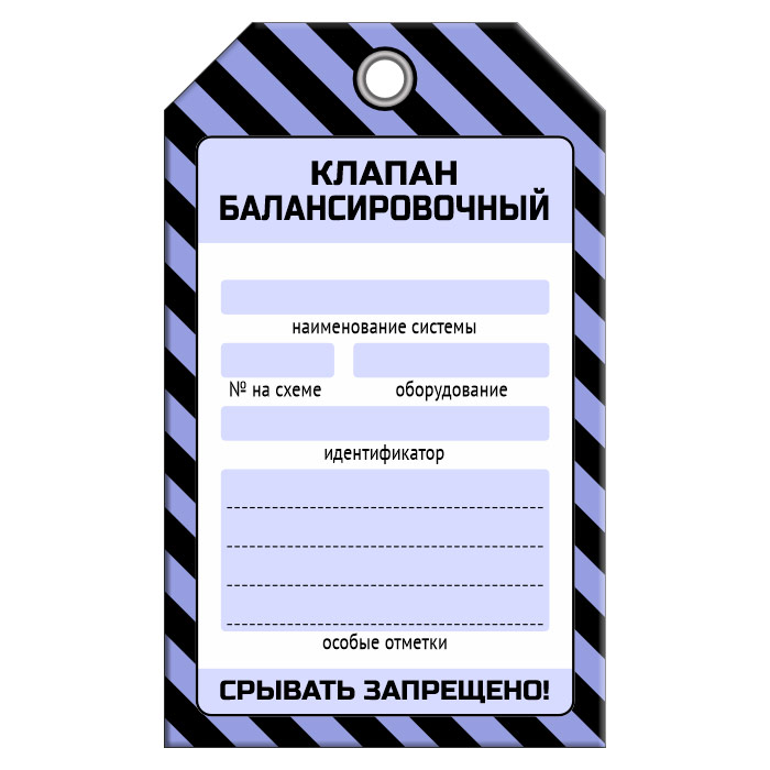 Бирка «КЛАПАН БАЛАНСИРОВОЧНЫЙ» (1 шт., односторонняя, пластик, 70х115 мм) в Ульяновске купить