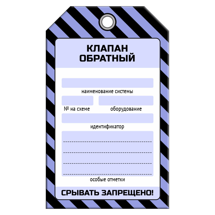 Бирка «КЛАПАН ОБРАТНЫЙ» (1 шт., односторонняя, пластик, 70х115 мм) в Ульяновске купить
