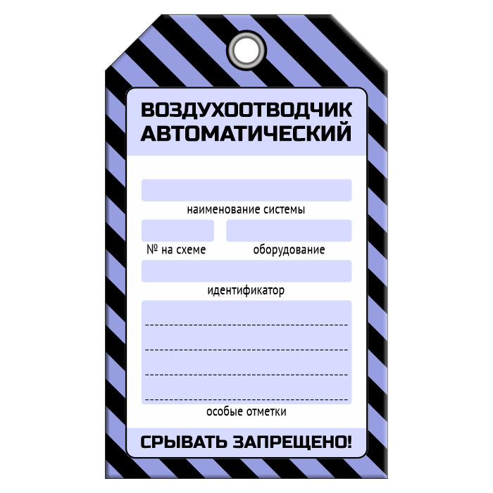 Бирка «ВОЗДУХООТВОДЧИК АВТОМАТИЧЕСКИЙ» (1 шт., односторонняя, пластик, 70х115 мм) в Ульяновске купить