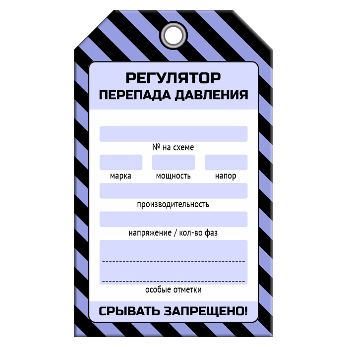 Бирка «РЕГУЛЯТОР ПЕРЕПАДА ДАВЛЕНИЯ» (1 шт., односторонняя, пластик, 70х115 мм) в Ульяновске купить