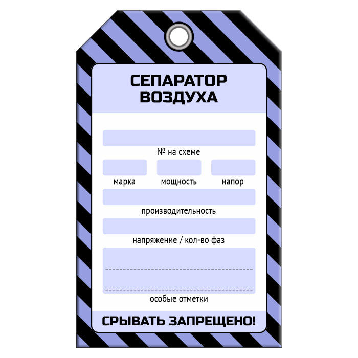 Бирка «СЕПАРАТОР ВОЗДУХА» (1 шт., односторонняя, пластик, 70х115 мм) в Ульяновске купить