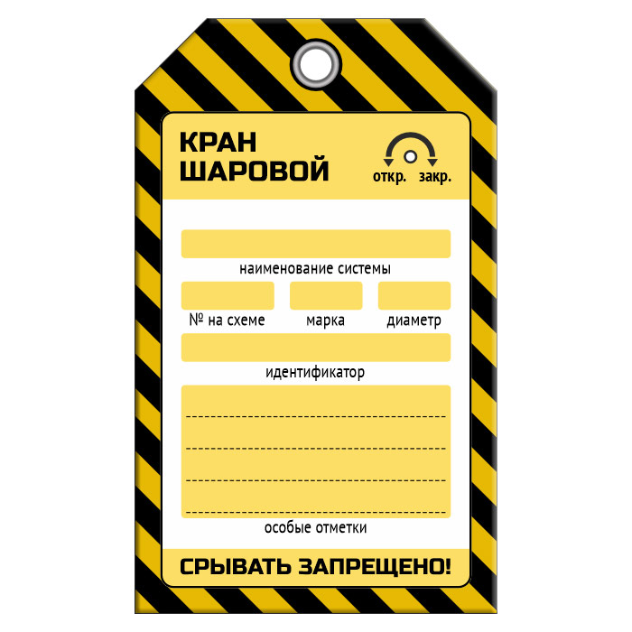 Бирка «КРАН ШАРОВОЙ» для газопровода (1 шт., односторонняя, пластик, 70х115 мм) в Ульяновске купить